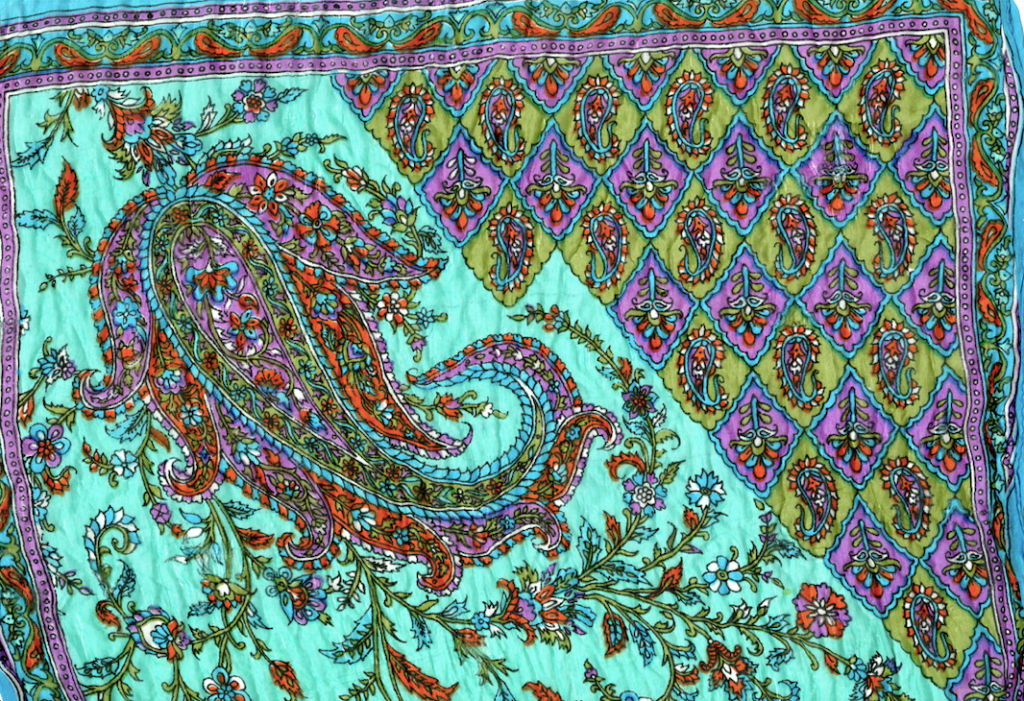 For the first day of scanning at the CDSC I bought a silk scarf that I thought the pattern of which would make a nice background. While doing my first scan I forgot to check the resolution and because the scarf I was scanning is fairly large I accidentally took a scan at a very high resolution and it took about ten minutes to complete. I have already gone back to the CDSC and scanned the rest of my items and having made the mistake of not checking file size once I was very careful to not repeat that mistake. The remaining items that I have scanned are small patterned paintings, pretty stationary, and some wrappers off of food items that have a nice texture,such as foils or translucent cellophane. I think the variety of textures and design that I am using in my scans will create a very multidimensional digital collage. While not too many of my items are all that sentimental they could definitely be organized into a collage that has large collective meaning.