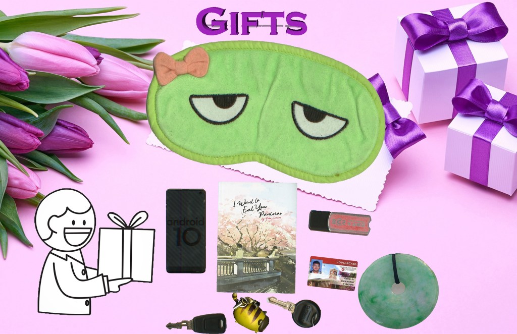 My comics look particularly boring, like a bunch of clutter cluttered together, but for me, these are my precious memories that have commemorative significance. At first, I was thinking about how to make my comics with a bunch of funny pictures, but I felt that the effect was completely different from what I wanted, so I tried to put some items that I thought were meaningful to me so that I could make people think why I put these things, so the meaning of comics comes out. In class, I often ask teachers and classmates what they think about this homework, which has helped me to design and complete this homework to a great extent. By arranging each item and then seemingly separated but closely attached, the implication is that although there is a temporary departure, the connection is not broken. I also chose purple tulips for my background. The flower language is an indelible love, which is the feeling of mutual help and support among loved ones. The language I choose is also the simplest word “gift”, which is a hint to the person watching.