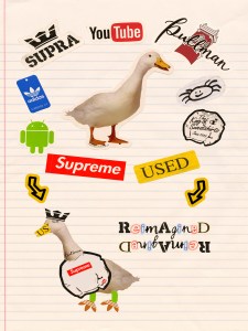 At first, I spread all the elements around the page, then I noticed that I could create a sequence by using the elements to create a new image as well as a new prospective. I noticed in other comics that were at the CDSC and especially in Lynda Barry’s, that they used different approaches when creating the story. When looking at a few digital comics that people have done in the past, one caught my eye that made meaning out of random elements. I wanted to create something that related to this with my project because I thought the idea was cool and it reflects the work that Lynda Barry produces. I had many stickers that were in a binder in my room and I thought of the idea of creating a sticker page. I remember as a child I as well as many of my friends had collection in paper in a journal. I placed the stickers in the project in a way that they would be placed in a page of an old sticker page. I used the linguistic mode for a small part toward the bottom of the page. I thought that adding text would better represent the meaning for the sequence. I used parts from the elements to create a new image and I thought instead of using regular text, I would use letters from the scans to create my text. I think that using the text within the scans would best fit the message I was trying to send when creating the project. I didn’t make much changes to the text except for resizing them so they could be read easier.