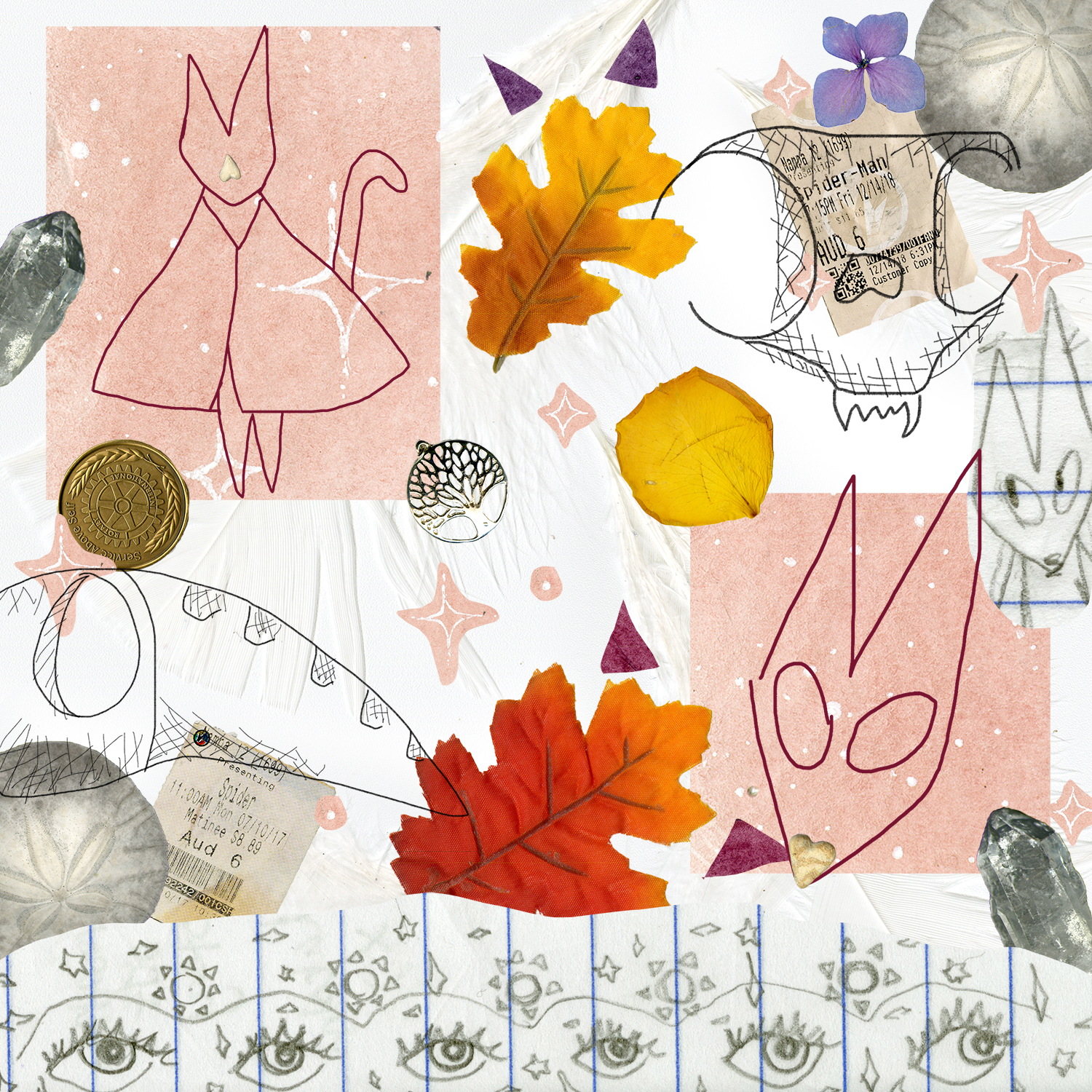 The information I hope viewers will take away from my work is an aesthetic response to the textures in my image and the pictures I used. I purposefully added three different types of drawings I did, including my sketches on paper, my sketches with the pencil tool and my drawings in the panels. I used a lot of natural elements as well, like the leaves and the gemstone, to create a more earthy feeling to it, kind of like a witch’s magic, but modern-day. Linda Barry’s work that we read gave me a lot of inspiration because I thought it was really cool how many different mediums and textures she added, making a flat paper look heavily layered. I wanted to make that feel with my own as well. The images I used together create meaning because it gives a distinct feeling to the viewer and their connection to it. This is not my first time using photoshop, I took a class in high school and I’ve been doing a lot of projects in it lately. I learned about layer masks and how easy/quickly they can be used during this project. I’m so excited to learn this part of Photoshop because it opens up a lot of other things that I can do now. I used the select and mask workspace for my tree necklace part to get every part of the image cut out. I did have issues with my file, it was completely erased and I had to redo the entire thing last night in a different form, it looks similar to how I wanted it, but I wish I had my old file. I like composing in a digital environment because it gives me the freedom to add different kinds of media together, and most of the time I can fiddle with it until the thing that appeared in my head appears on the paper.