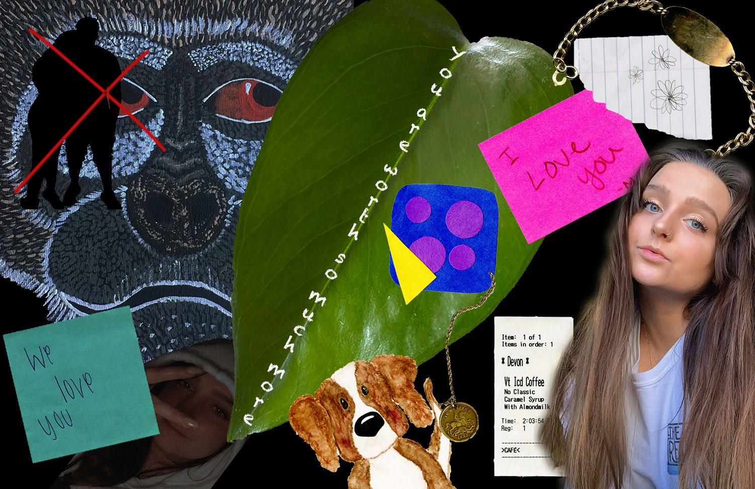 The Materials I used were specific to me and my story, however an unintended bonus was the textures both scanned and photographed items presented within the project. For example, the leaf is actually a photograph of the plant I planted when I cut out a toxic person in my life and is a huge part of my comic. While looking at the comic you can also see the light hitting angles of the leaf exposing different vanes and textures the leaf accompanies. When it came to the visual choices in regards to the linguistic parts of the comic, some came with the scans however I also used photoshop to place the most important text upon the leaf. I Also changed the font of the text to look like the texture of chalk, a texture and item I use to communicate with my residents as a resident advisor.