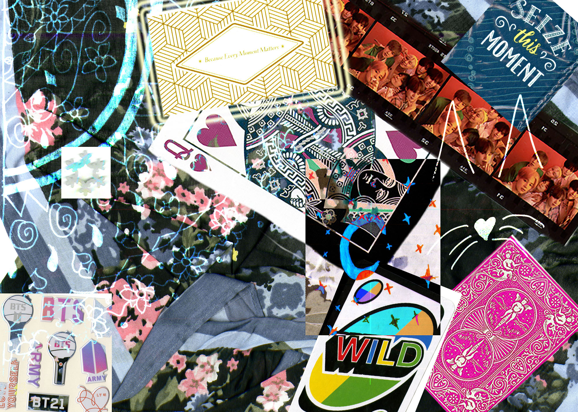 My comic collage conveys information about me in an aesthetic way. Lynda Barry’s book “What It Is” inspired me because her comics are done her way even if it doesn’t look like a traditional comic. The materials I chose make meaning through the collage process by putting images together and making them look good next to each other to create a good visual. I didn’t write any words but I chose some materials that had words on it. I chose not to make them the center of attention but enough where people can see them. So I put them around the collage and not right next to each other so it is more spread out. The words are important to me and that is exactly why I chose them.