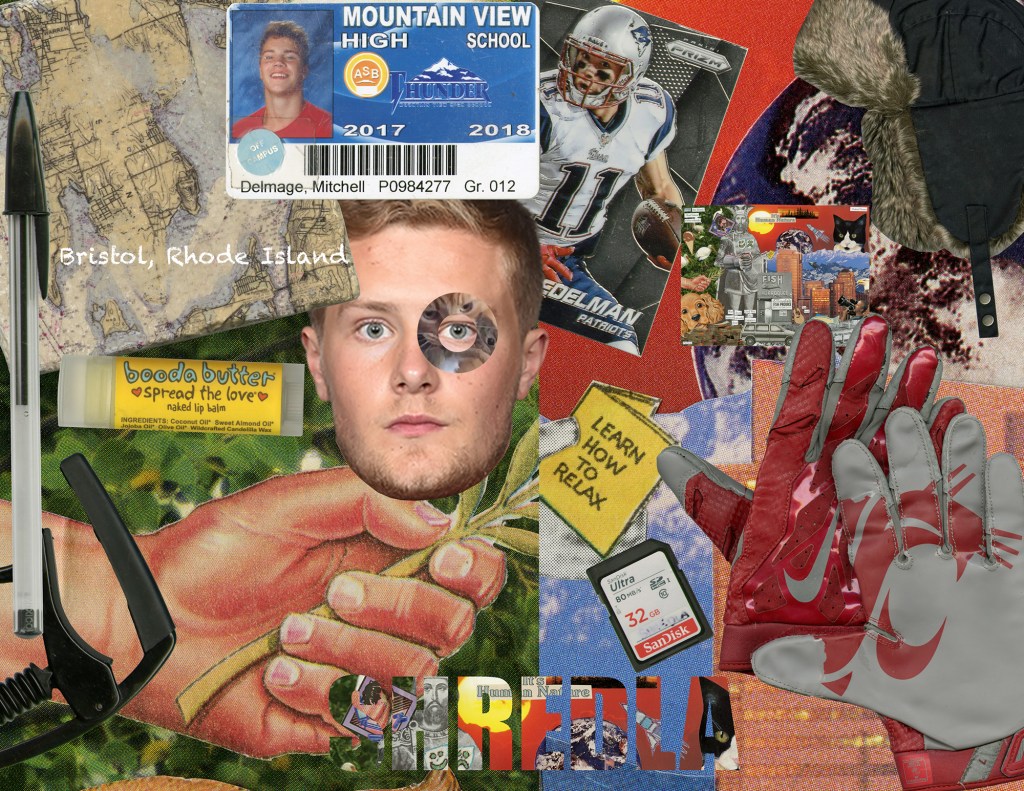 The coaster of Rhode Island is very important to me because Rhode Island is like my second home, and I have a large amount of family members that live there. I chose to use words to clarify what the map was. I chose my high school I.D. card because it represents everything in my life before I came to college. The Julian Edelman player card is important to me since I am a huge New England Patriots fan. The hat placed on top of the world in the top right corner represents a side of me the loves adventure and travel. The picture in the picture depicts a king looking over a city and mountains, and can be interpreted in many ways. The Washington State football gloves represent a very important part of my life. It represents everything I have achieved, and all the hard work I have done in my life. The word “Shredla” with the picture in the letters is probably the most important aspect of the collage. Shredla is my whole world right now, and it is my brand. Some of the other items represent smaller things in my life. I put some small, less important items like the pen and chapstick to represent how the little things in life are important.