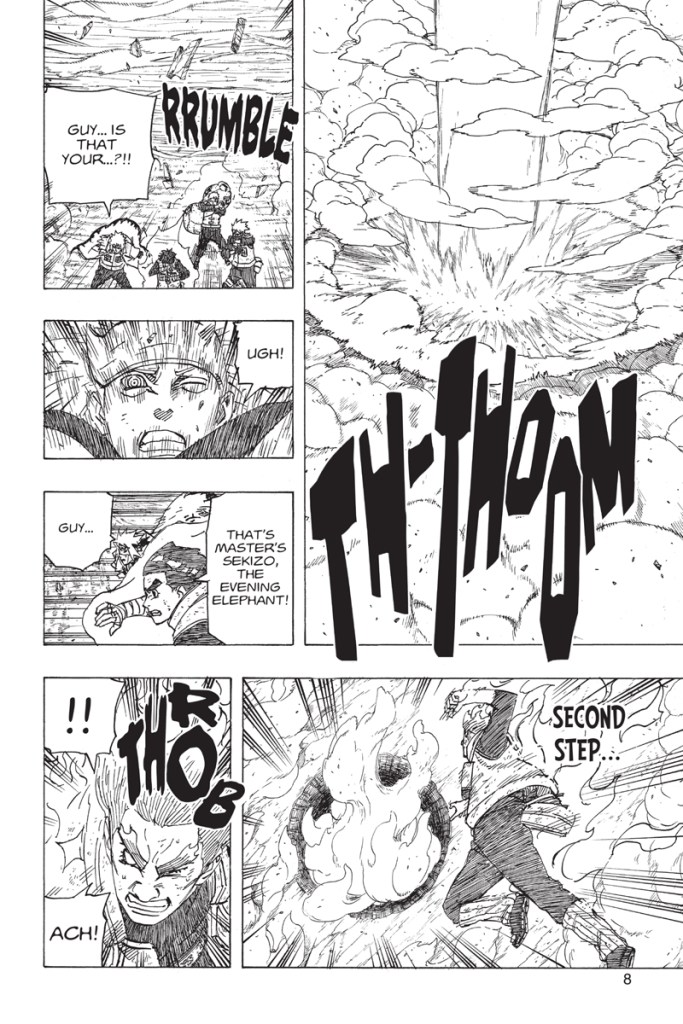For my blog post #4, I chose to read about Naruto. Naruto is mainly known as an anime tv show, but they also release manga. Manga are comics or graphic novels created in Japan or using the Japanese language and conforming to a style developed in Japan in the late 19th century. The first image that I have shows the example of action-to-action. The reason that it shows action-to-action is because it shows Might Guy (bottom right) punching Madara Uchiha (middle left). The “TH-THOOM” action shows how this is action-to-action closure.