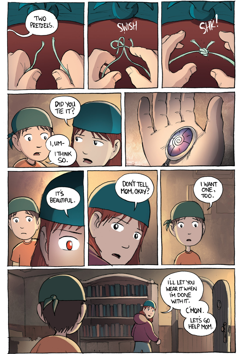 For time frames I decided to go with this scene where the two main characters find the mysterious amulet in the room that they were cleaning. The reason why I chose this scene was due to the mystery it presents when the girl handles the amulet in her hands. From the fourth to the sixth panel there is a distinct change in her eye color that causes the reader to make their own assumptions or interpretation to why this is occurring. Throughout the rest of the page she also seems to have completely changed her attitude and the subject which adds to the mystery of the story. My interpretation of this scene was that the amulet had taken possession of her.