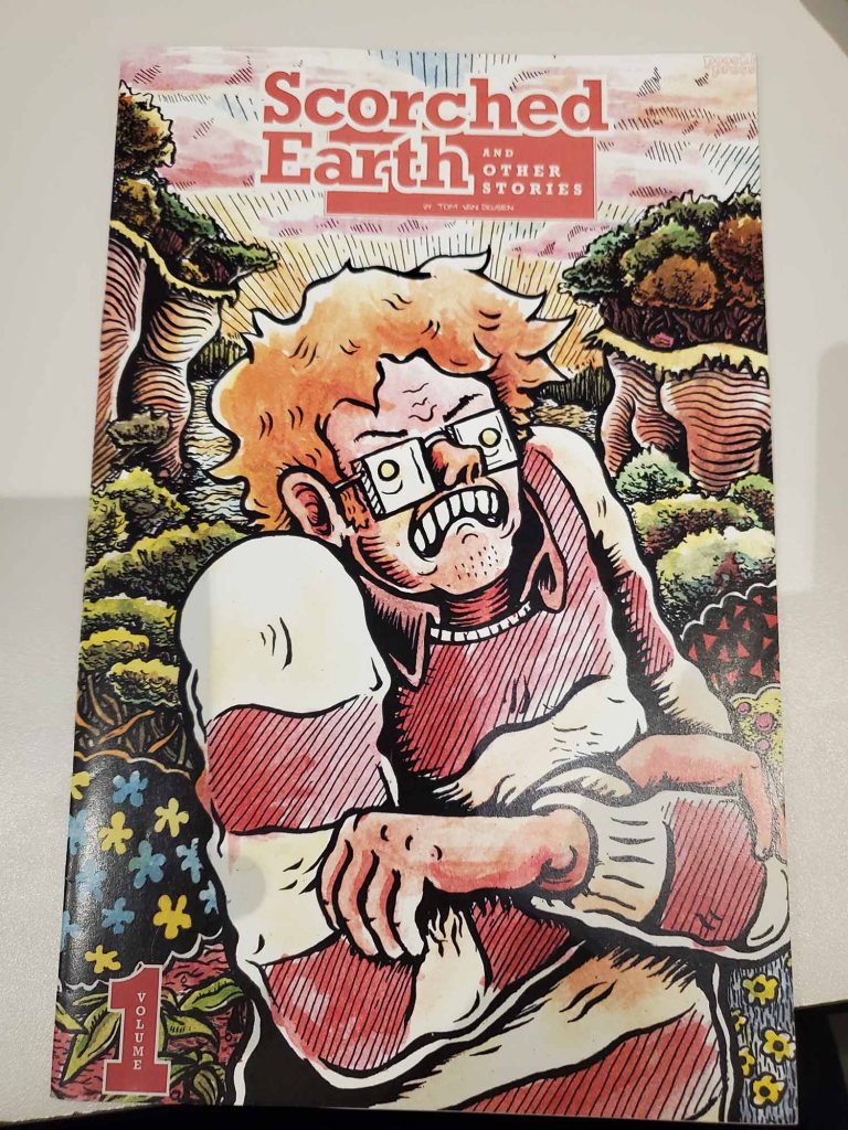 On Tuesday, I read a lot of comics. There are cute UFOs with loving collages, comics with wild styles, comics that say infection with the virus implies precious life, and comics that I do n’t understand. But in this project I decided to write about from the WSU Museum Collection Study Center is “Scorched Earth and Other Stories” by Tom Van Deusen. This comic is paper-based and quite textured. When I browsed this book, I was very interested because it is not an ordinary comic book; unlike other comics I have read, the story is fictitious. After reading this comic, I can see that the author wanted to Use this comic to ridicule some social status quo. He used his protagonist ‘Tom’ to do various things to express the social situation at the time. Tom is a sad character. He has been frustrated everywhere. The women he meets with blind dates are hated by him. His work is not smooth and the relationship between friends is not good. He seems to be hated by the world.