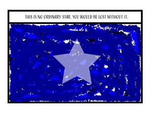My Comic is interdependent because if you were to separate the words from the picture you would not be able to come to the same conclusion. The image depicts a star in the sky, and unfortunately my painting skills are not amazing so the reader could believe that a child has painted a canvas and stuck a star in the middle. If you read the wording you know that the star aids in navigation however, because you do not know if the star is in the sky, the star could be some kind of item. I would categorize my comic as Duo-Specific. I do not believe that either the picture or words weigh more than the other, both depict the same idea.