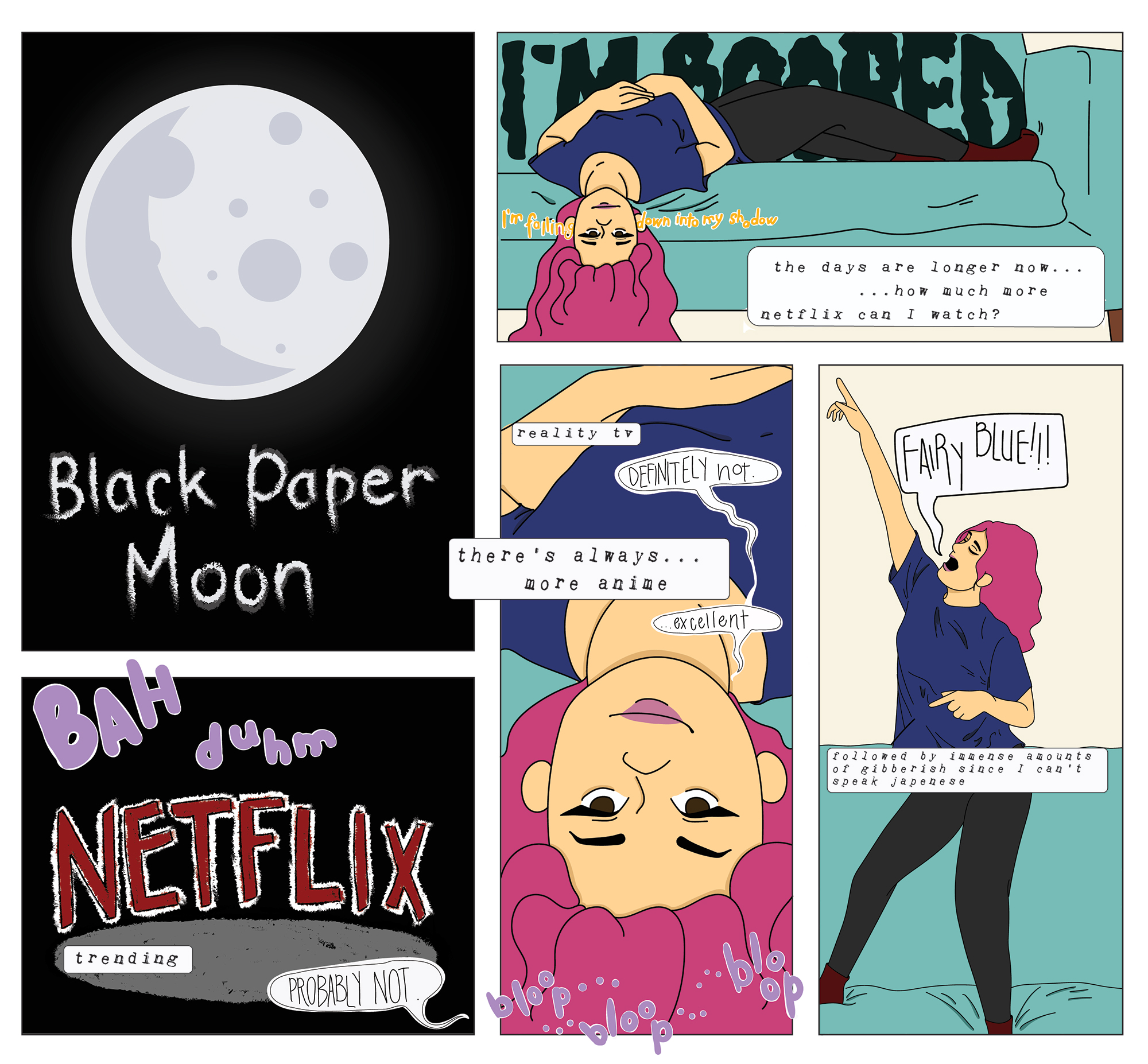 Similar to last weeks comic, with all the quarantine and social distancing, I’ve found more time being alone than I’m used to. This sparked another comic of me continuously watching more anime since streaming services is about all the entertainment I’m getting now.