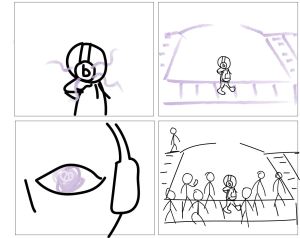 For the previews comics that I have created for the class, I felt that they only have one meaning and one way of looking at them. While in this comic I wanted to challenge that and leave the meaning behind the comic up to interpretation of the reader. I did not want to take a stand on if listening to music in public could be a bad thing or a good thing, so instead I just showed the power that music can have on people. It can be used as a way of isolation while also keeping you calm and motivated.