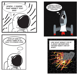 I was interested in reading simplistic webcomic. I enjoyed reading webcomics that express the character’s emotions and speech with the different way of speech bubbles. Those way of web comics have inspired me to draw a comic with their speaking in expression of speech bubbles and simplistic way. I have contained the message that is very realistic and possible to happen to any students who have been struggled in their school life. Many of the students would have felt the feelings of overwhelmed with school either middle school, high school, or even in the college at least once. I have contained those feelings onto my web comic so that the viewer can identify with the story, understand it, and know why the character has dreamed like that. I think the viewer would be able to interact with my comic by having empathy with my subject from the web comic. My comic can be viewed on different devices but it would only be able to view by scrolling down the each panels. I would expect Scott McCloud to positively react on comic based on containing good storytelling and a closure.