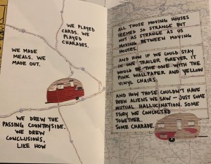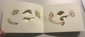 During my time at WSU Art Museum Collection Study Center, we got to look at the Northwest Alternative Comics exhibition from fall 2016. This collection consisted of comics at the poster size, as well as in zines. When reading through a variety of zines, I found that I really enjoyed the works of David Lasky. In his comic book “Manifesto Items 4” I looked at this page with 3 simple panels that really made me think and hear the authors voice. The Author of this comic is very straight forward about the three ways you can look at the human race. In his first view (panel 1) it reads, “Human beings, What a strange plague…on planet Earth.” This quote, paired with a drawing of a skinny arm and chest, as an additive combination of words and images, it brings to the views attention that human beings are weak yet plague the earth with our actions.