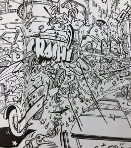 McCloud, in chapter five talked about conveying emotion through lines. I felt like the comic “Crazy Men Go Wild” was a good example of that because of the fact that this comic had a lot of lines and patterns throughout the whole book. The thing that really stood out to me were the abstract lines of these characters faces. It conveyed the emotion of chaos in these characters and it gave it a sense of uneasiness through the whole comic book.