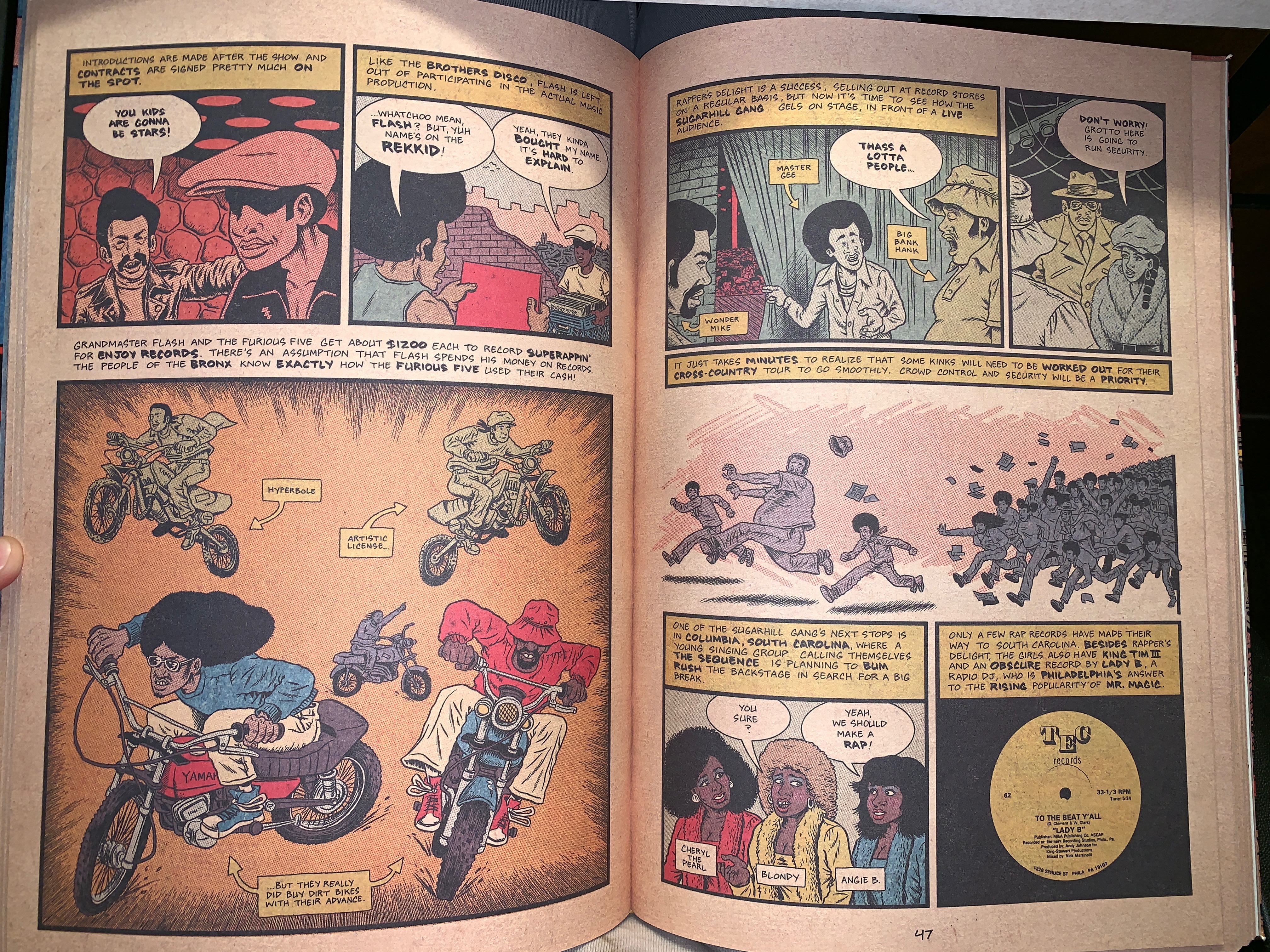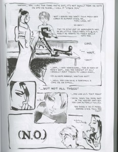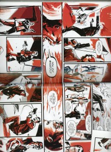 One example of closure (action to action) is on page 63 of They Called Us Enemy. In this scene, George Takei’s father went to go look for the barracks that his family was assigned to stay in during the camps. There are two different panels in this example. In the first one, Takei’s father goes to open the door of the barrack. In the second panel, Takei’s father opens the door and is met by an intense heat coming from inside. This is an action to action example because it features one subject (the dad) and is showing one complete action (opening the door).