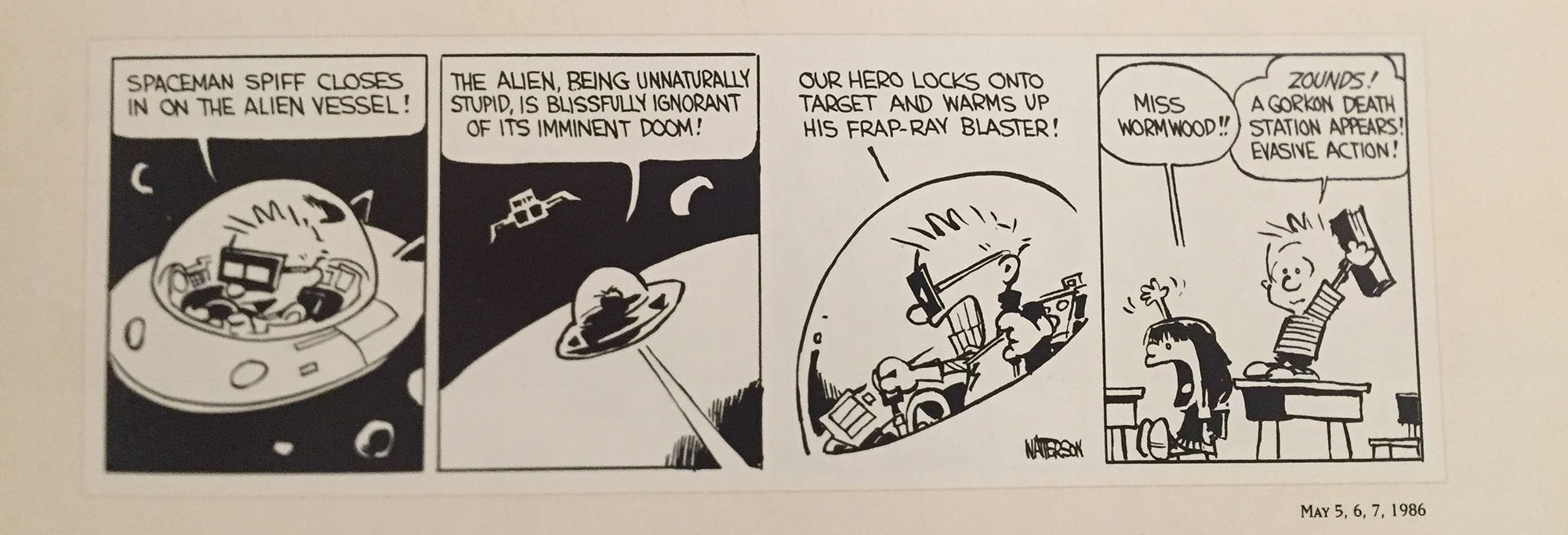 One example of time frames is on page 146 of They Called Us Enemy. In this example, Herbert, a missionary, is driving a truck in the first panel. In the next panel, he is being shot at from a car behind him. This is an example of time frames because the reader is led to wonder just how long he was driving for before getting attacked. When you look at the first panel, it looks like a relatively calm scene. It does not seem like he would get shot at in the next moment. One might wonder just how long the time frame was for this scene, and how long that car may have been following him.