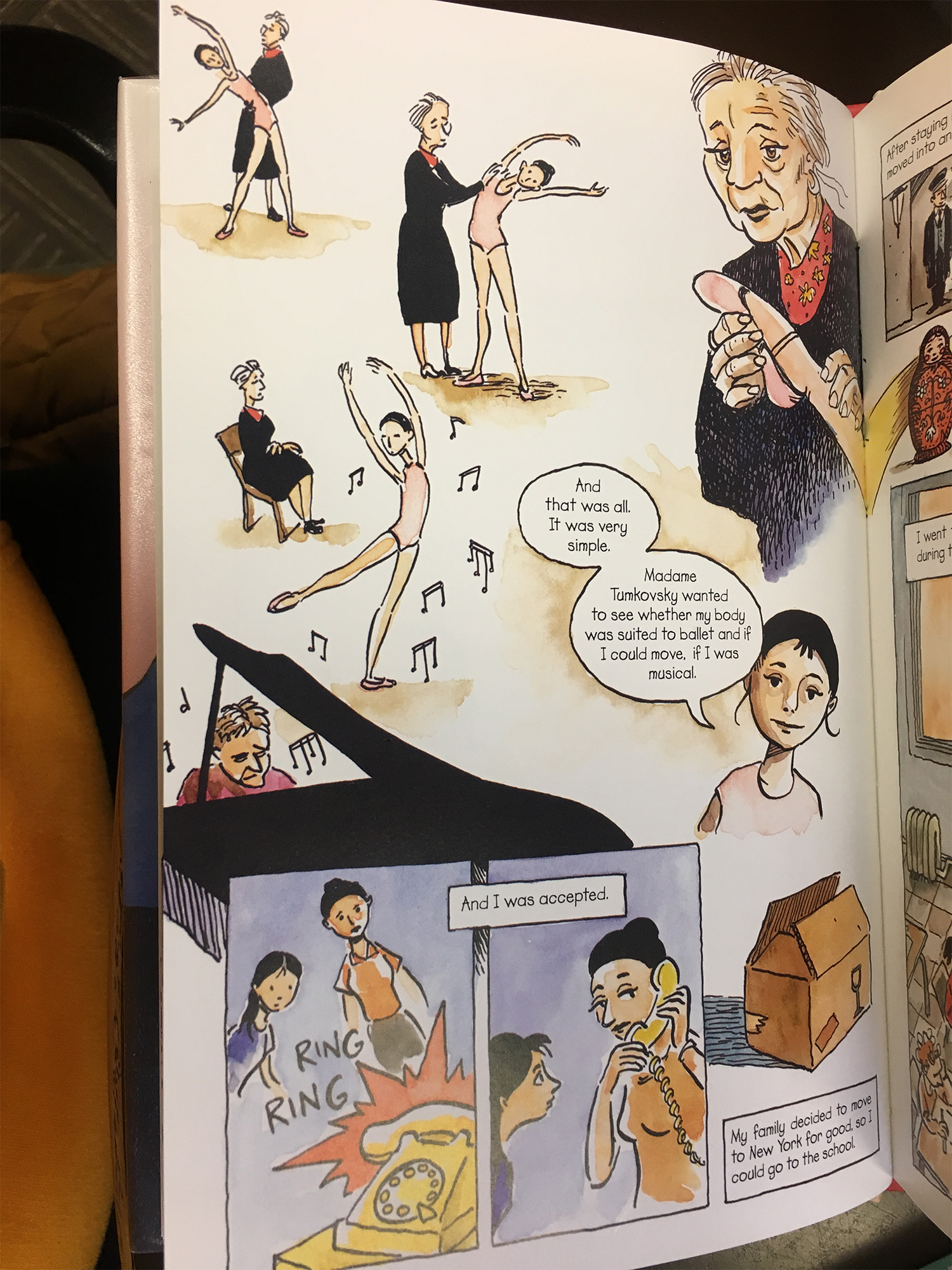 This photo was taken by Ana Maria and it is a page from the book, To Dance: A Ballerina’s Graphic Novel written by Siena Cherson Siegel and Illustrated by Mark Siegel.