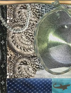 This fits in with McCloud’s definition of comics because I feel like the visual message translates into the text chosen. John Lovett’s work helped me to incorporate texture and the unity of colors. I used an eyedropper and used the same color from my scanned images to put emphasis on the text. This helped me to create meaning to my collage. Although someone may not view it the same as me, I have always had a connection to flowers, and the jacket I scanned was a gift from my mom. This made the imagery aspect special to me and the perfect time to use the quote in which I live by. I wanted the center of my collage to just be my handwriting because the message was important to me. That way the more you look at it the more details you may see on my scans that surround the text.