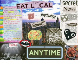 With this project, I sought to combine elements of my home and heritage/culture, specifically Hawaii and Japanese culture. The objects from Hawaii are situated more towards the top half of the collage, excluding the background which is a design from a lunch bag. These include things such as a Hibiscus flower, the logo from a local sunglasses company and a design from a T-shirt. Obviously for the sunglasses logo, Maui is stated right in the name, but as for the t-shirt logo, it is from a brand known as “MauiBuilt.” I would say that the majority of shirts that own are from that company and, overall, have that signature local type aesthetic to it. As for the Hibiscus, this is Hawaii’s state flower, however, this is the pink variant rather than the yellow. Then, in the background is the lunch bag with designs commonly seen in Hawaii and other Polynesian cultures. One last element on the top is the koi fish. Although not an uncommon sight to these fish in some areas of Maui, they are more closely associated with Japanese culture and thus I used it to represent the idea of myself in this comic. The koi fish seemingly enters from the right and, by creating a greater contrast with color in the design on the lunch bag, implies movement through that leading lines. That line leads to and goes past the Japanese elements on the bottom. These include images from a manga, a game holder, and a design from a Japanese noren (sign curtain). Each of these items were bought in Japan, over the few years I was lucky enough to travel there. As the koi fish travels along that fuchsia colored path, holding those strong ties to Maui close, it picks up those items of Japanese entertainment culture and continues along that path. In other words, symbol of the fish represents me traveling along my path maintaining strong links back to home while also embracing and picking up elements of Japanese culture. Juxtaposing these elements in a way where it lines up with Lovett’s ideas of harmony and unity were key. Many of the items possess a warmer hue which was intended to contrast the darker greens in the background. Also, looking at it with a diagonal split, I attempted to balance out the upper right portion of close proximity items with very saturated colors with the bottom left portion that has less color to it, but has the white to balance out the weight of the whole design.
