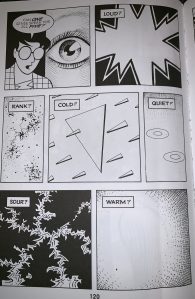 The use of line seems like one of the most “simple” elements to create as an artist, but it really sets the tone for the whole art piece. If it doesn’t flow just the right way it might throw the artwork off and make it harder for the viewer to comprehend. For example, on page 132 the second box down on the left , you can see how specific he meant to make the lines to look warped to the reader– a kinetic line. He used to the line to make it seem like the picture was moving or warping into something else, or in his textbook he describes it as a “psychological effect”.