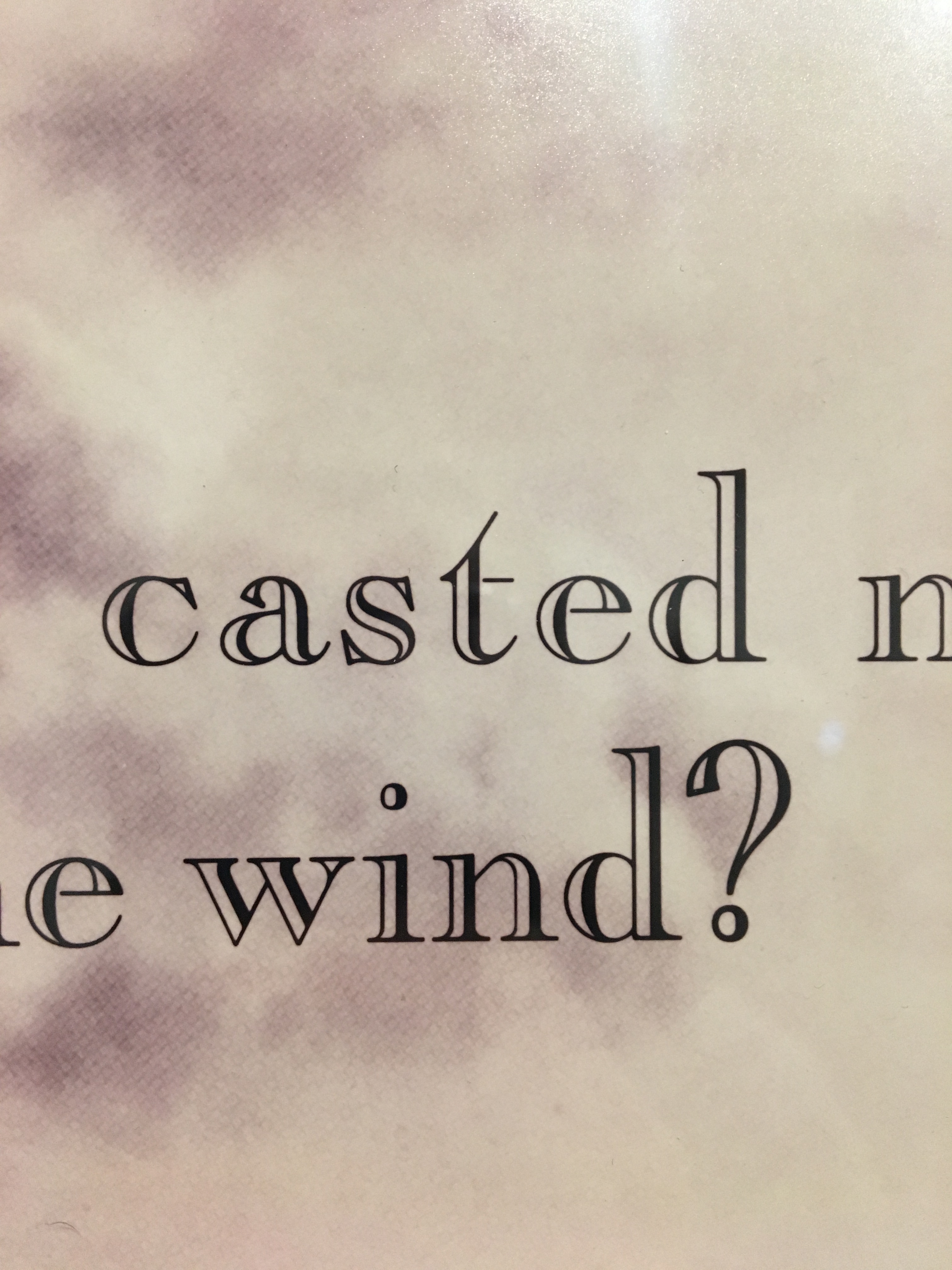 I think this is an interesting and relevant example for me because the picture uses a typeface that is sim ilar to mine in the sense that it has a constant x-height for every letter. This is also an interesting piece because the way the words are wrapped around in a spiral pattern, starting form the middle and working its way around and out, is very interesting to look at. I also like this image because it is one of three in a set, and each one of the images in a set are different images of the artists life, showing off things in his life and things about him. One thing that was very interesting about this image was the face that there is a 3D box in the middle of the image that does not seem to have any meaning or reason for it being there. Also the fact that the words are an autobiography of the artist, and it starts with where he was born in the middle and as he grew up and matured, it is described as the words go around the spiral. This is also an interesting picture because the image from a distance, looks like a fingerprint, symbolizing the autobiography because just like a fingerprint, the words represent him. Some things about this image that will influence how I create my typeface are that the words don’t have bold stems and spines, but are all consistent, and that is how I want my typeface to look like, where it is simple and easy to read, and also clean and consistent. What I like about this typeface is that all the letters are capitalized, making it so no particular words stand out and seem more important than others.