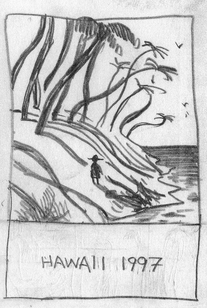 Some aspects of your comic may be drawn/created by hand before you translate them for digital use. (Hawaii by Sam Alden. Scott McCloud, ed. Best American Comics 2014. Boston: Houghton Mifflin Harcourt, 2014. 119.)